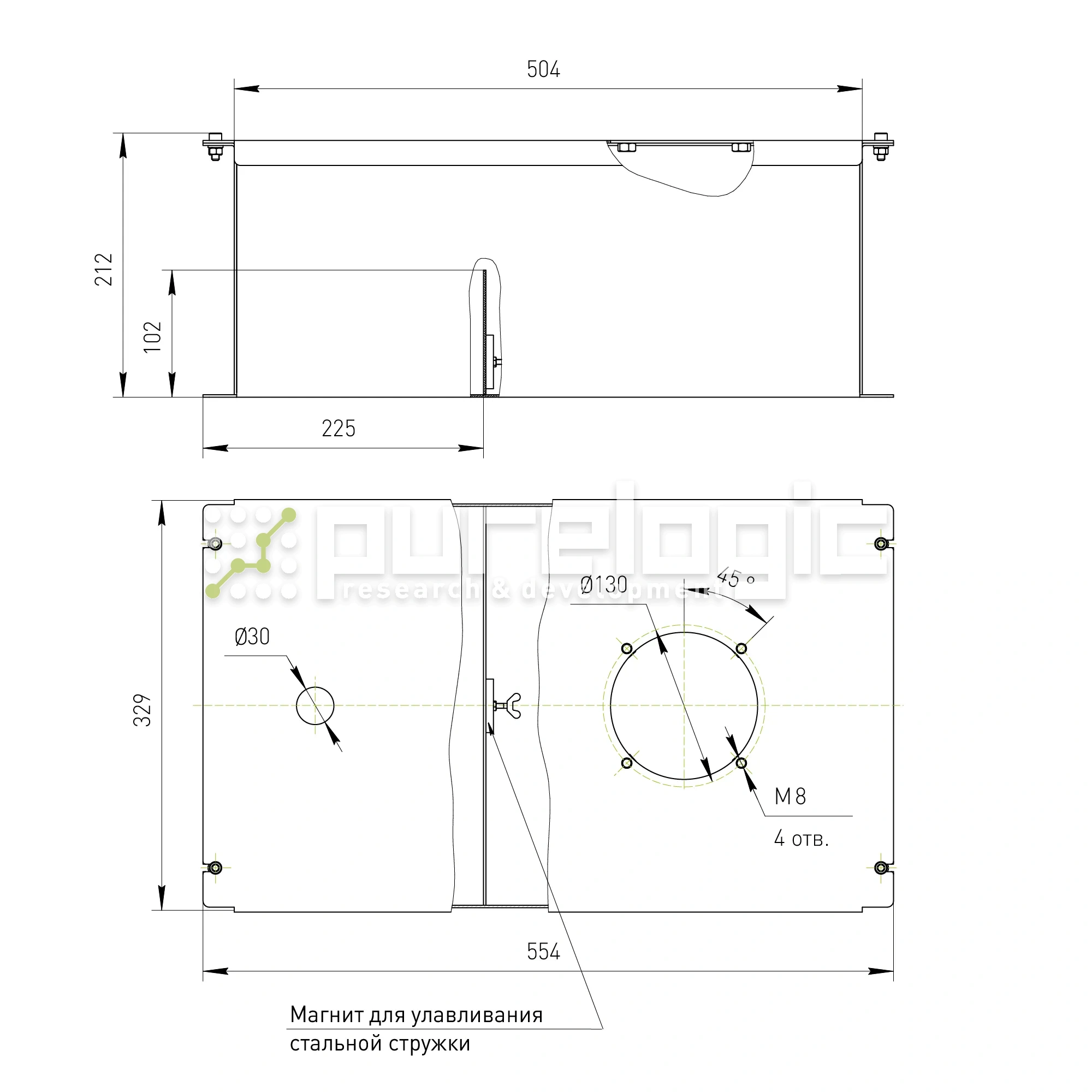 Бак объёмом 30л для систем СОЖ, используется совместно с помпами АВ-25-xxxx. Бак оснащен перегородкой для фильтрации и магнитом для улавливания стальной стружки, что улучшает качество очистки СОЖ от продуктов резки. Металлические отходы собираются на поверхности магнитной пластины и впоследствии легко удаляются.