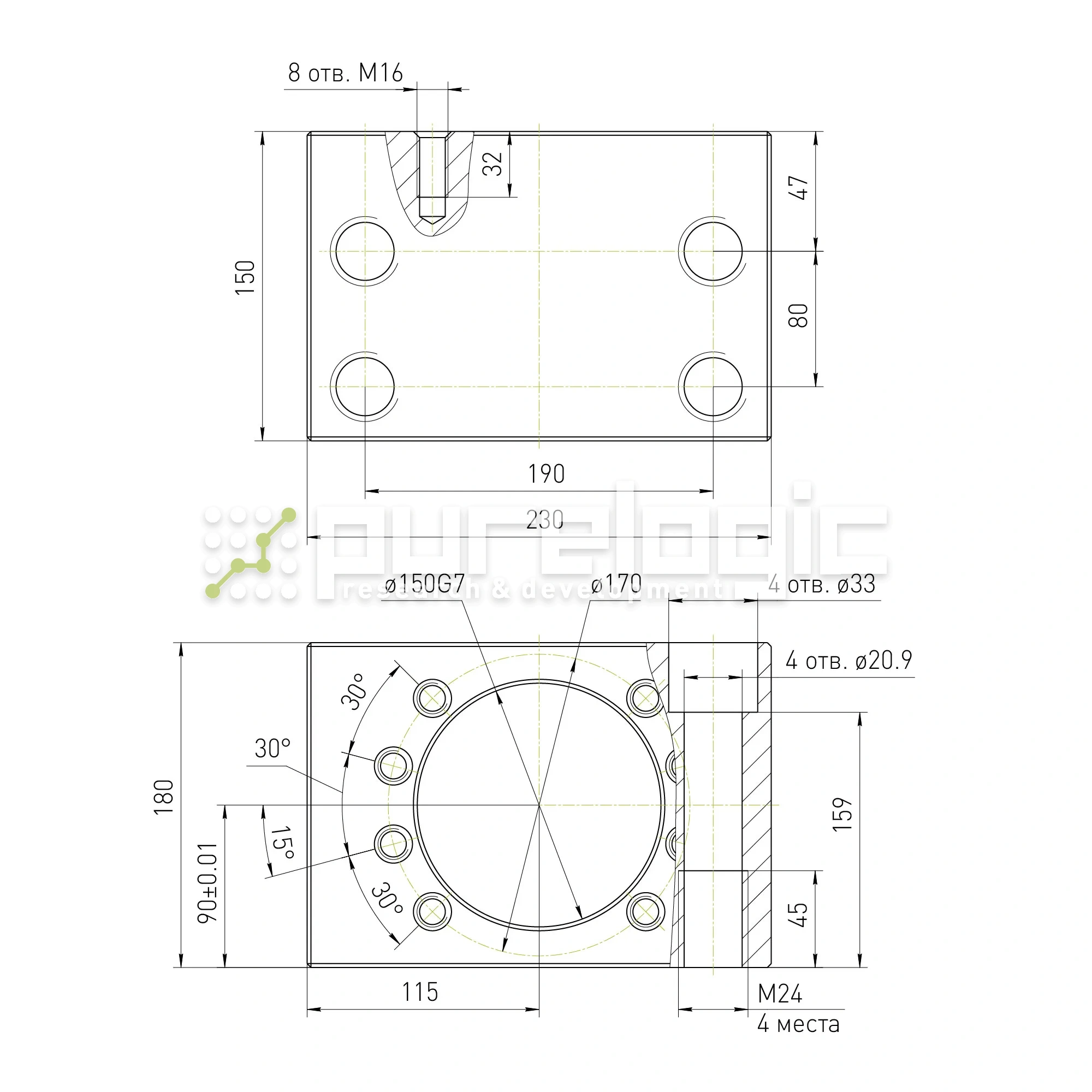 Модуль крепления гайки ШВП серии SFU/DFU. Изготовлен из алюминиевого сплава Д16 с последующей обработкой сопрягаемых поверхностей на современном высокоточном оборудовании. Модули проходят многоступенчатую систему контроля качества. Для гаек SFU10020/DFU10020.