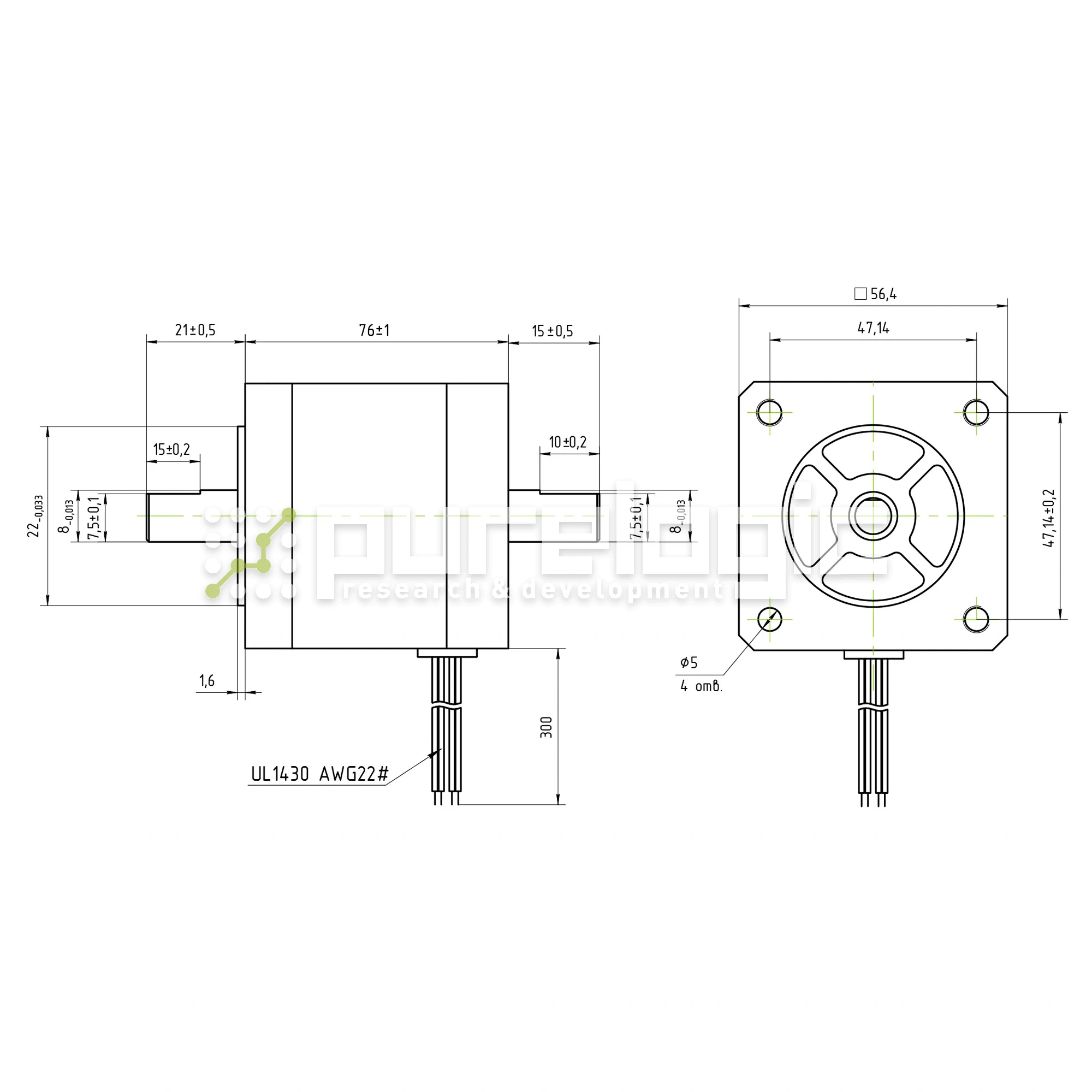 57х76мм, 23кг.см, вал 8мм с двух сторон, ток 5.0А, шаг 1.8°, 2 фазы