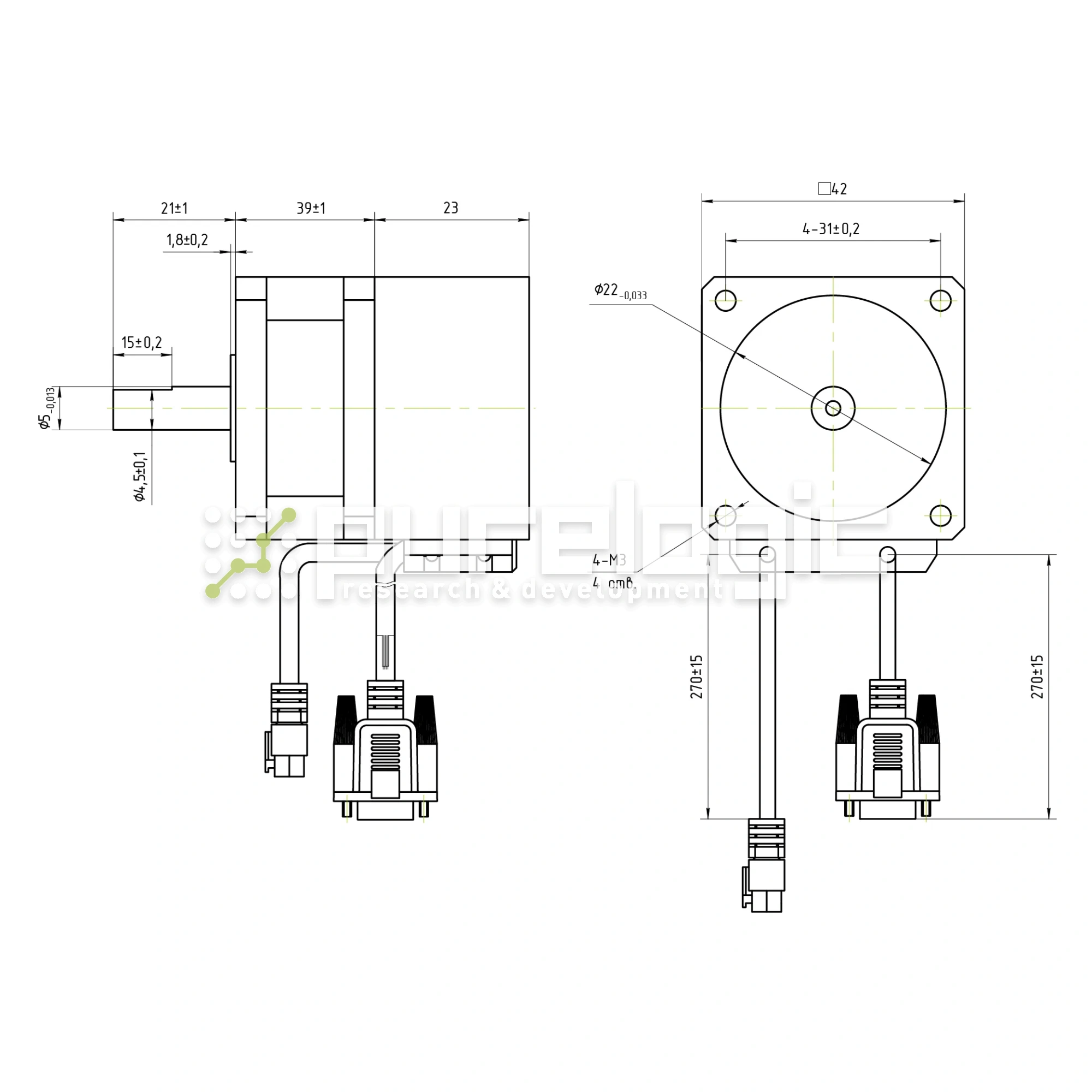 42x62мм, 2 фазы, 4кг.см, вал 5мм, ток 1.5А, шаг 1.8°, 2.3 Ом, 1000PPR.