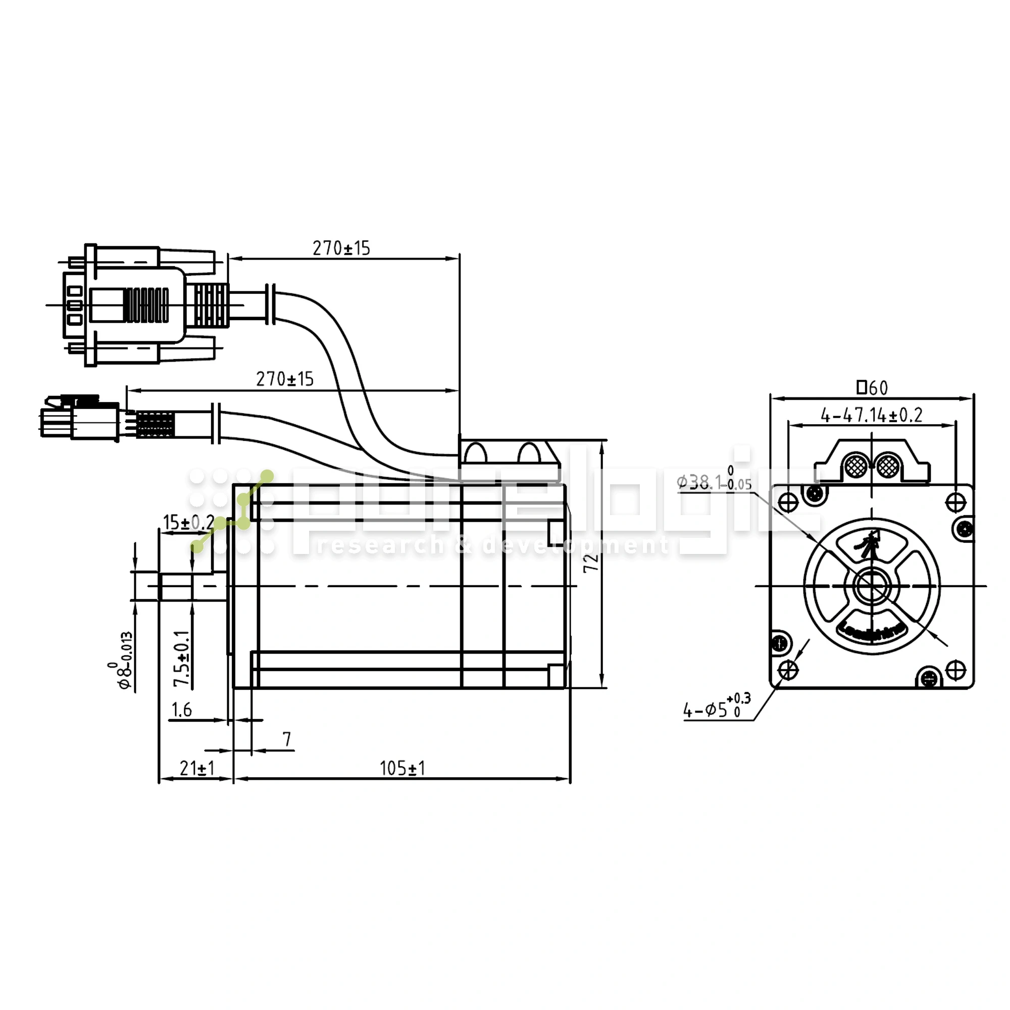 Сервошаговый двигатель с 2 фазами (сопротивление фазы 0.26Ω±15% при 20°) имеет момент удержания 3.1Н*м и угловой шаг 1.8°±5%. Рабочий ток двигателя - 6А. Прочность диэлектрика шагового серводвигателя составляет 500VAC/1 мин. Оснащен энкодером с разрешением 1000PPR. Электродвигатель совместим с драйверами PLDS880 и PLD1090S. Для этого необходимо подключить драйвер к ПК, запустить PLD Configurator и выбрать установочный профиль данного двигателя.