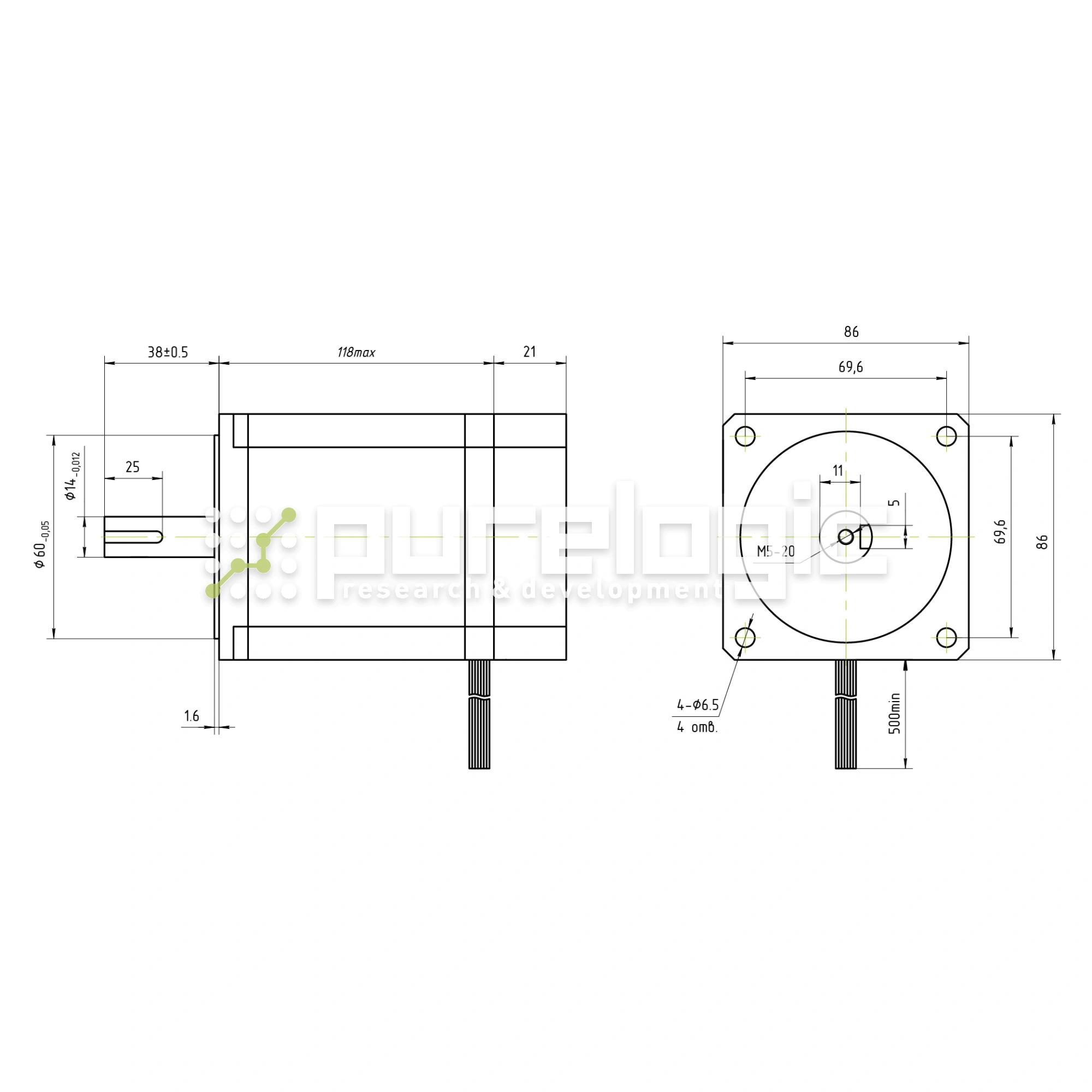 Двигатель шаговый с энкодером HD86H118-D14-1K