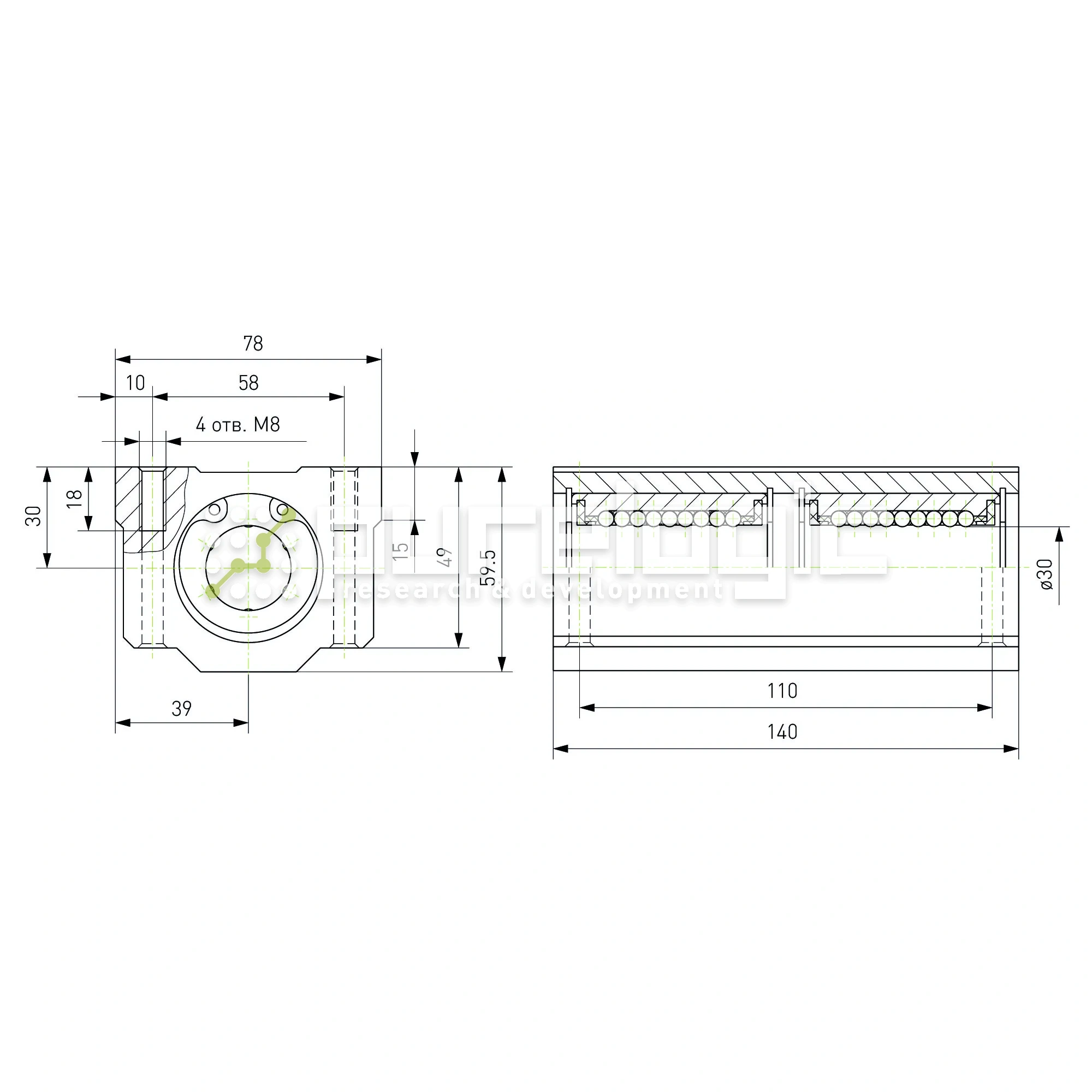 Удлинённый опорный модуль на вал Ø30мм.
