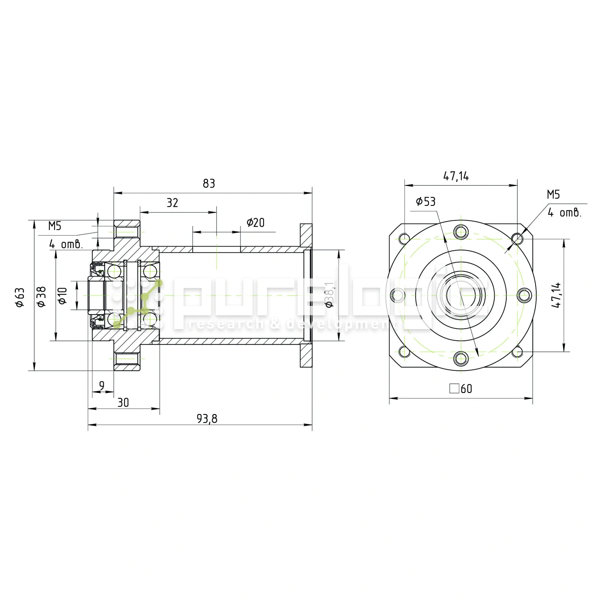 Опора винта с фланцем PLM57-10