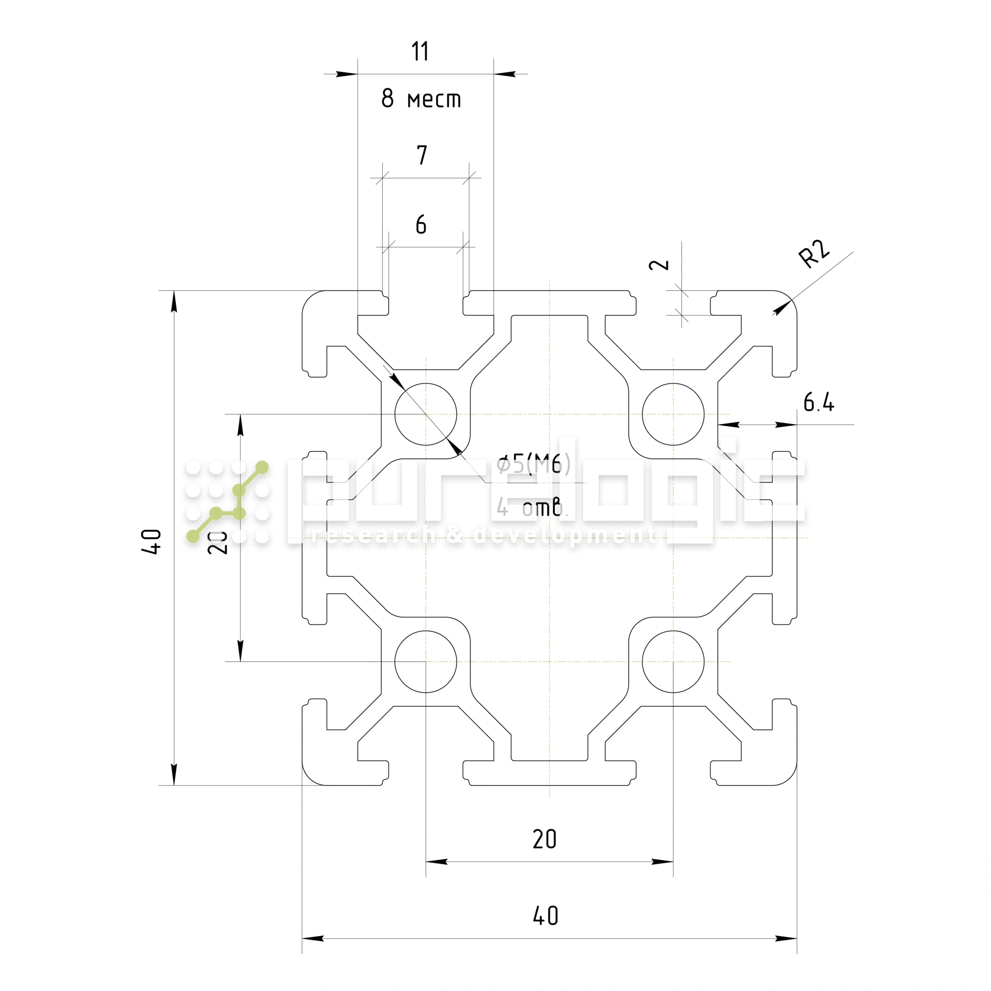 Профиль алюминиевый HXB4040E-6
