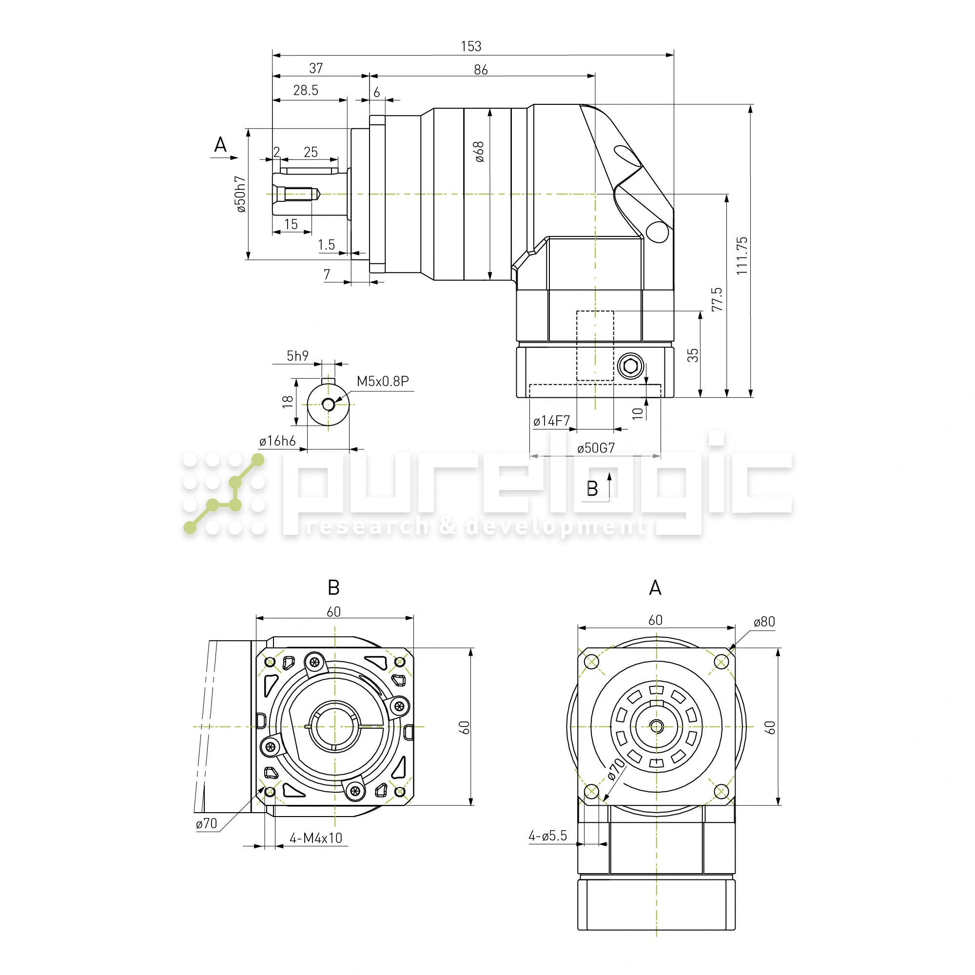 Редуктор планетарный прецизионный угловой 60EVB10K-S16-P0