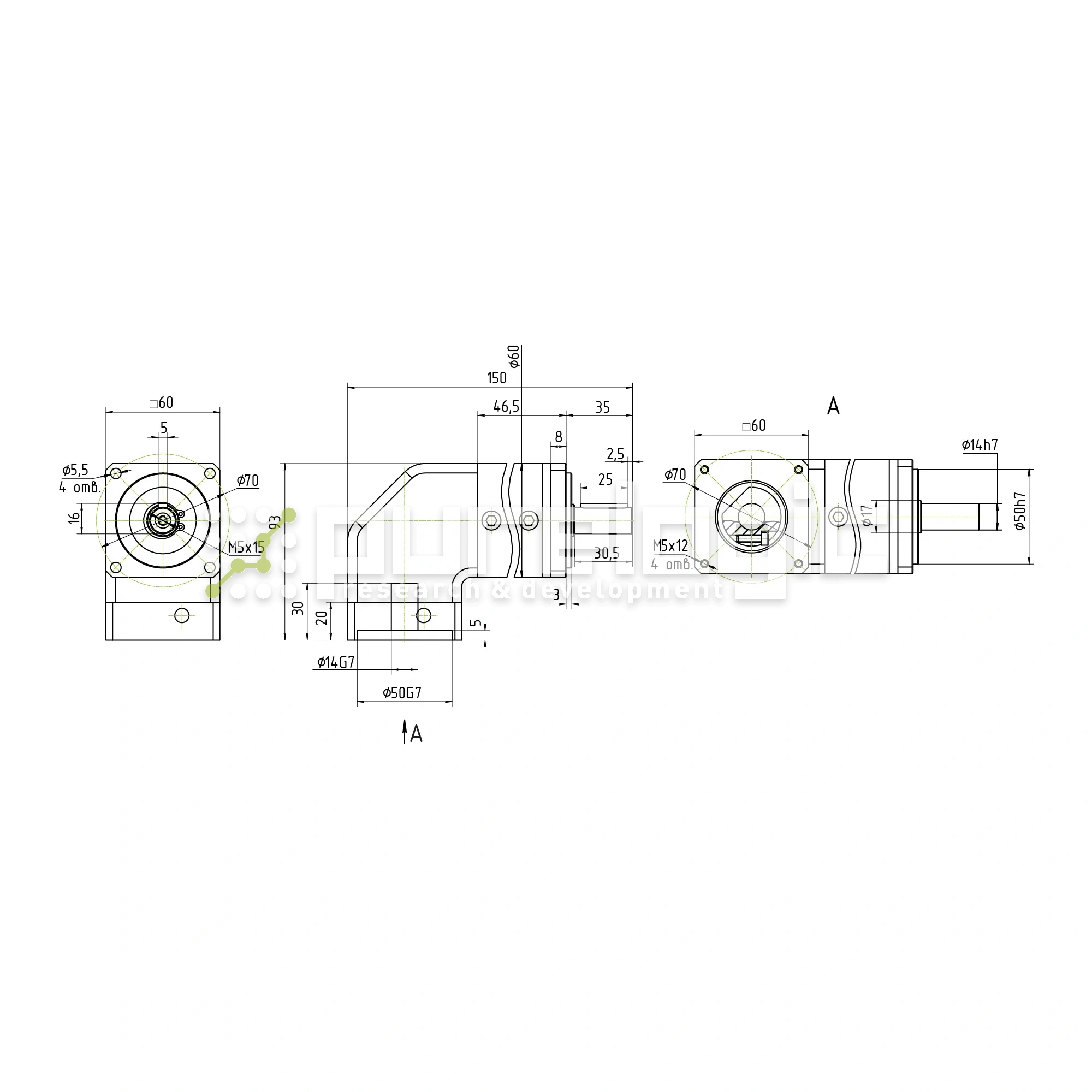 Редуктор планетарный угловой 60WPLF10K-14S