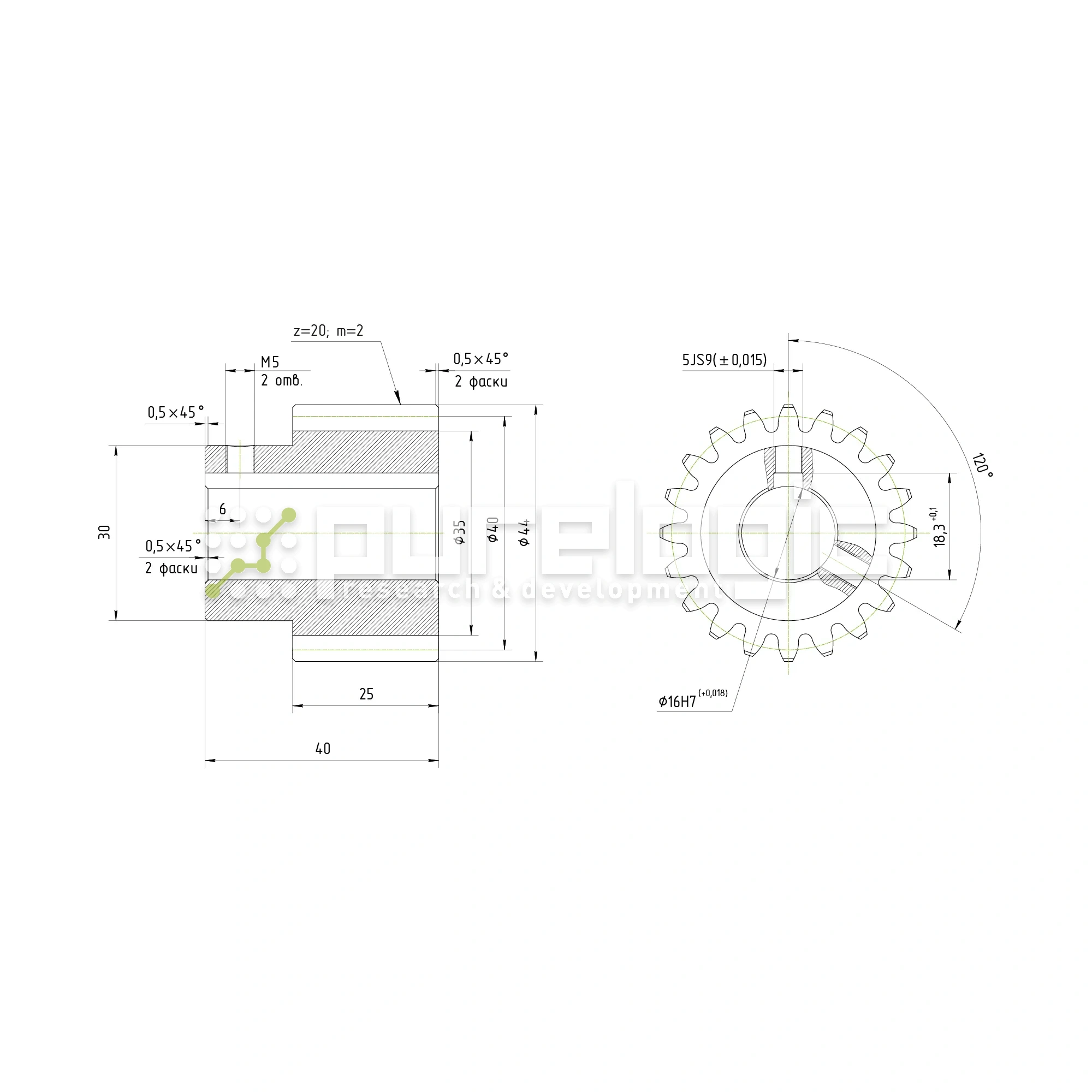 Шестерня прямозубая GS2-T20D16