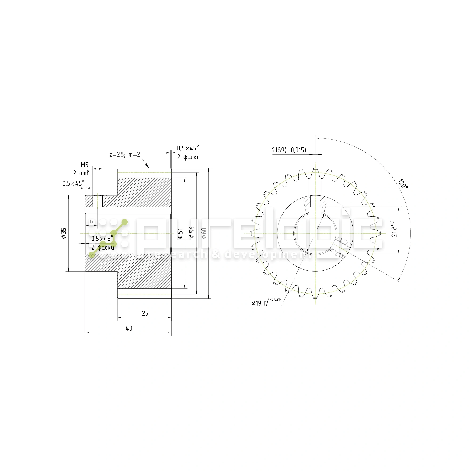 Шестерня прямозубая GS2-T28D19