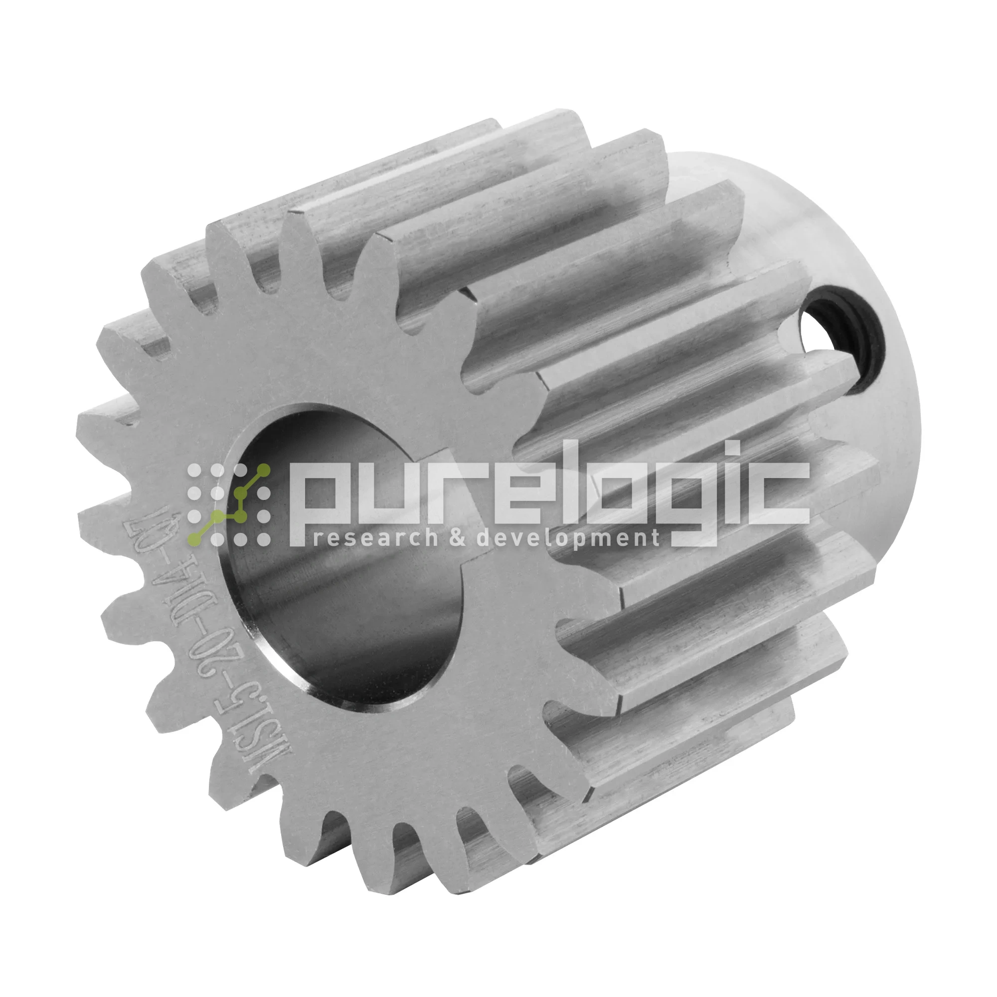Высокоточная прямозубая стальная шестерня к зубчатой рейке, материал сталь 45C. Покрытие - химическое оксидирование. Шестерни допускают установку на вал электродвигателя. Допускается наличие следов заводской обработки на шестернях, не влияющие на функциональность детали. Модуль 1.5, на вал 14мм, 20 зубьев