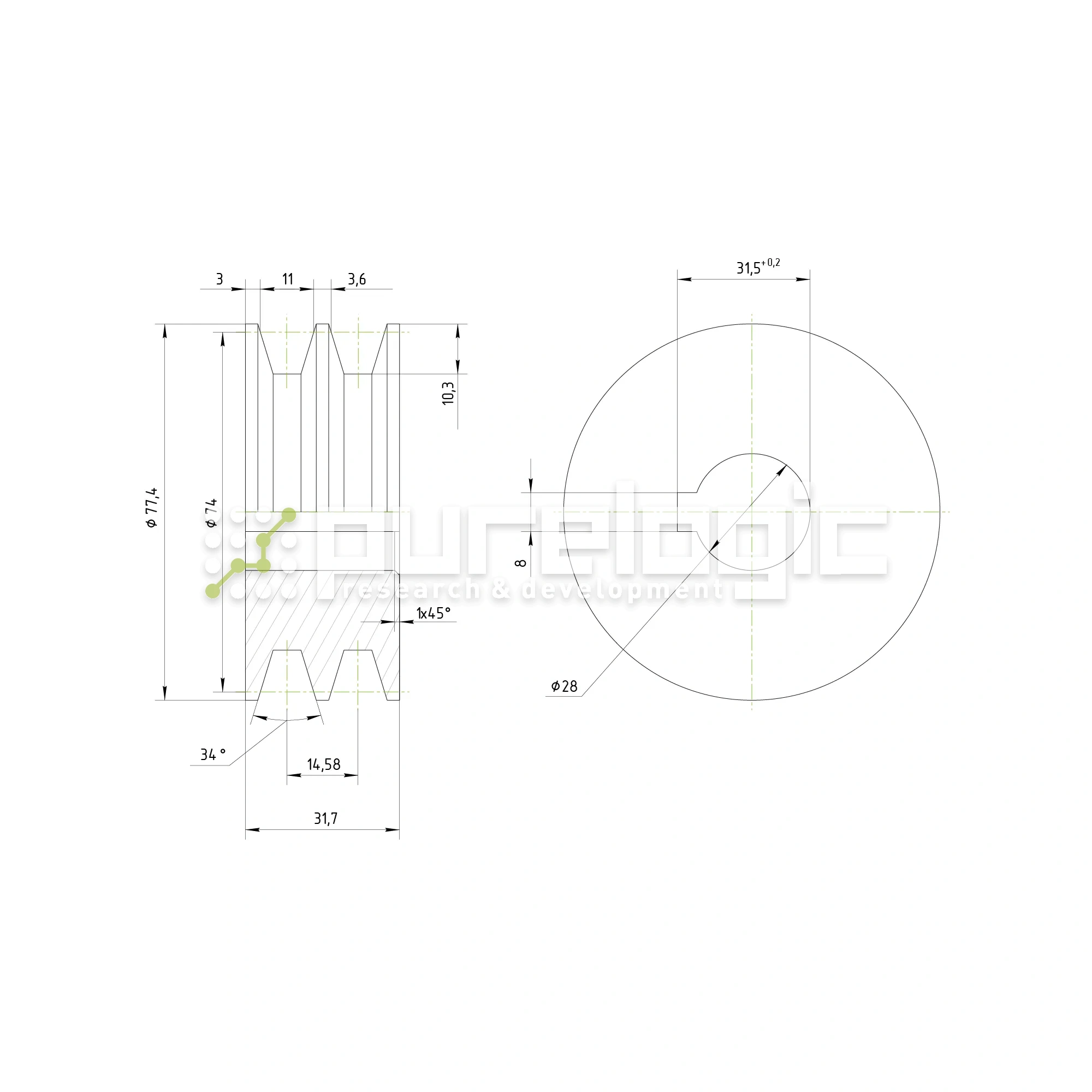 Шкив DP2A-28-80